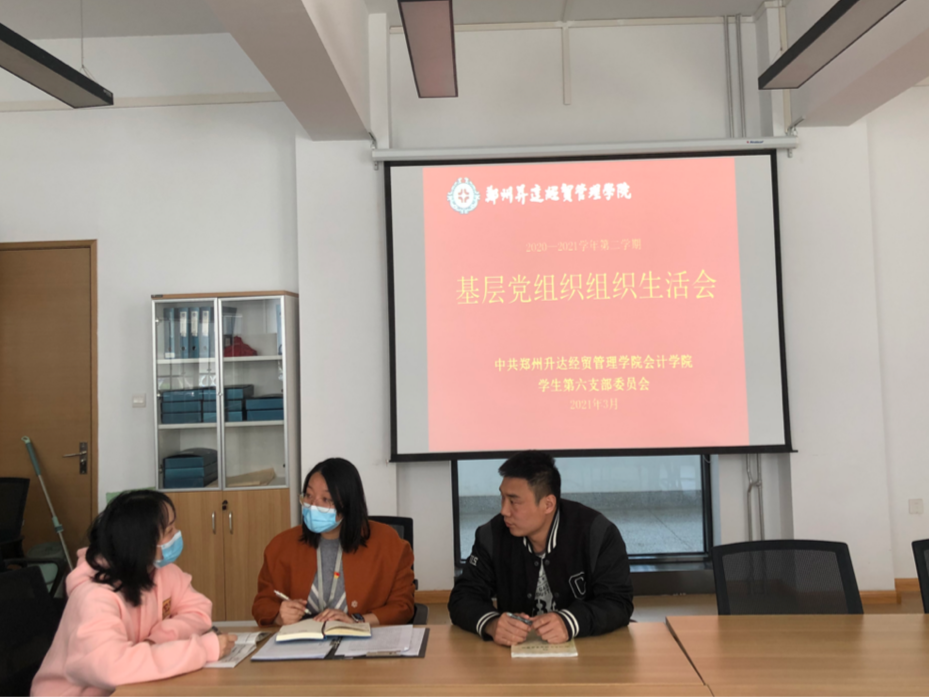 3月25日下午本党支部在教学四号楼209召开2020年度基层党组织生活会和开展民主评议党员会。参加本次会议的有党支部书记王岩峰老师、组织委员杨柳老师、宣传委员杨煜老师以及学生第六党支部的学生党员、预备党员。大会由党支部书记王岩峰老师主持。