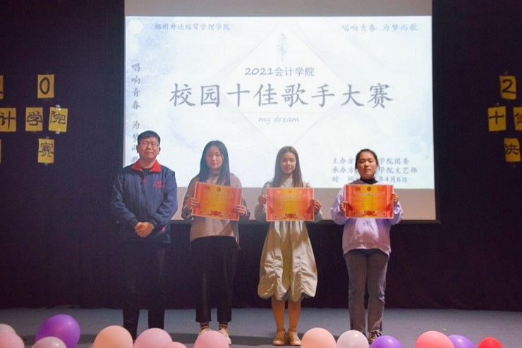 经过精彩的角逐,最终到了激动人心的颁奖环节。由赵鑫鑫老师为张宝甲、王晓云、黄向荣、祝洋庆、张诗珺、赵玥媛、张雅淇颁发十佳歌手奖并合影留念;由郭军学老师为戴碧霞颁发三等奖并合影留念;由杨柳老师为赵玮颁发二等奖并合影留念;由刘锦老师为刘震坤颁发一等奖并合影留念;由陈刚老师为20级会计专科2班、会计专科6班、财本1班颁发精神文明奖、道德风尚奖、最佳组织奖,并合影留念。