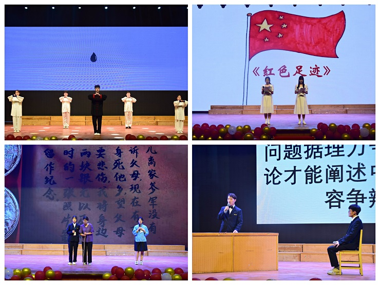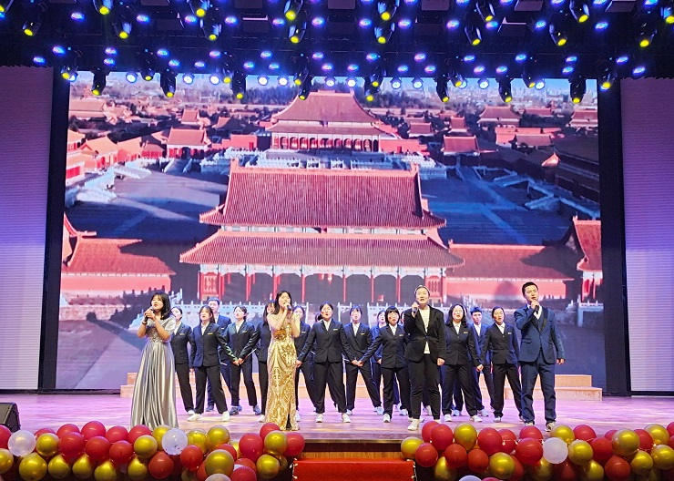 晚会进行第三幕“江山锦绣 国富民强”。由升达国学社为大家带来的舞蹈《华夏》,尽显古典舞韵之美;由秦苏瑞、赵玮带来的歌曲《少年》展现了“天高万阔万里长,华夏少年意气扬”的少年壮志;由太阳网集团tcy8722演讲队带来的朗诵《清澈的爱只为中国》,用真诚、朴实的话语表达了对祖国无私的爱;最后由太阳网集团tcy8722第七期团校班的同学带来的合唱《明天会更好》,用“志气存高远”的歌声激励着同学们勇敢向前,奔赴更加美好的明天。