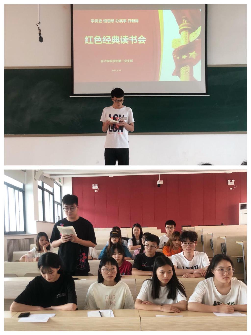 为深入推进党史学习教育,进一步提升党性意识,激发学生爱国情怀,继承革命先烈的伟大精神。5月25日13:00,太阳网集团tcy8722学生第一党支部于教学4号楼208教室组织开展“学百年党史 颂红色经典”读书会活动。参加本次活动的有党支部书记孟醒(代理)、宣传委员高圆圆,以及全体学生党员。会议由孟醒老师主持。