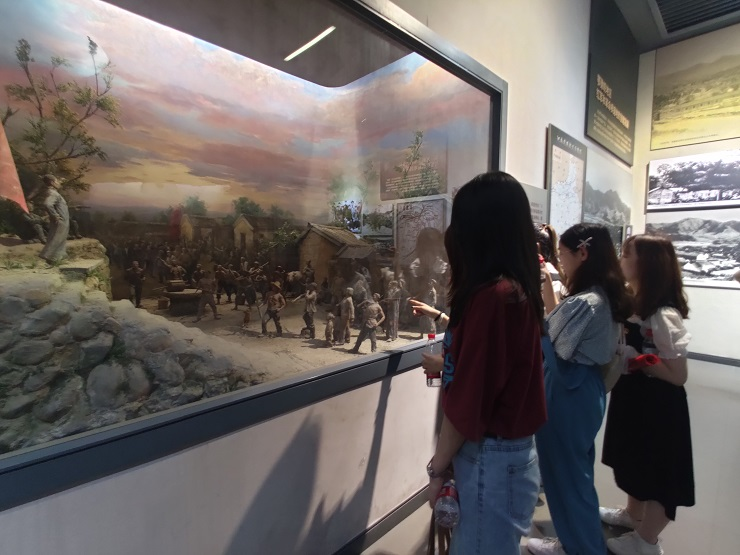 首先,全体党员参观了中原英烈馆。全体党员怀着崇敬的心情走进英烈馆,参观了抗日英雄烈士纪念厅、京广铁路大罢工纪念厅、优秀共产党人纪念厅以及“不忘初心、牢记使命”主题教育展。墙上那一幅幅革命烈士的照片,展区那一座座英雄先烈的浮雕,生动形象地展现了那个战火纷飞、硝烟弥漫的年代。战士们脚上磨破的草鞋,身上破旧的军装,脸上坚毅的表情,更是将革命先烈的坚定意志彰显得淋漓尽致。党员们纷纷表示,这是一节生动的爱国主题教育党课,通过回顾革命先烈的英勇事迹,自己深感和平环境来之不易,并表示以后在学习生活中一定会不断加强党性修养,弘扬优良作风,不忘初心、牢记使命。