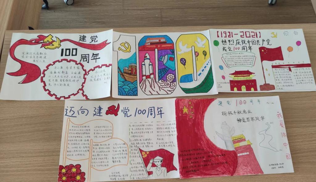 学生们积极收集资料,精心绘制,用手中的画笔回顾党的历史,永远铭记革命先辈的英名和丰功伟绩、缅怀他们的精神和风范。通过小组合作的形式,经过细心的绘制,一张张红色主题的手抄报让党员同志们感悟革命志士的家国情怀,传递红色能量。