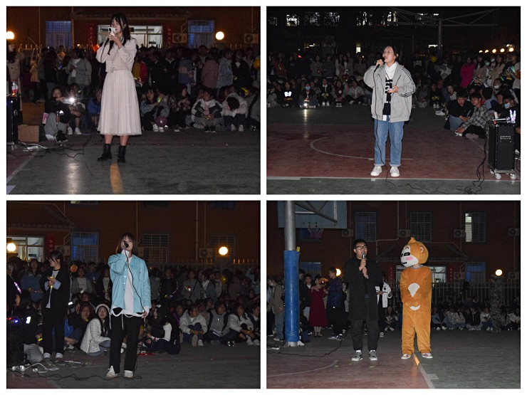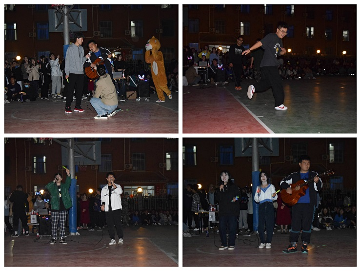 新生们有序的围坐在一起,文艺部的一曲《奇迹再现》拉开了演出的序幕,点燃了整个现场。新生们呐喊着,挥动着手中的荧光棒。21级新生带来歌曲串烧《Newboy》、《日不落》、《后来》向我们展示了梦想的伟大以及成长生活的不易。接着,文艺部现代舞队带来舞蹈串烧《Breaking+next level》,动感的舞姿展现了青春的魅力与激情四射。21级新生带来的歌曲《这世界那么多人》让我们不禁感慨你我相遇的缘分。文艺部民族舞蹈队带来舞蹈《伯虎说》展现了岁月平静又治愈,不正世俗名利,只谈乡野淡泊的安静。岁月匆匆,人海茫茫,让我们抓住《时间轴》在时间慢慢的流逝中,抓住精彩瞬间。紧接着,由文艺部和政论部共同演绎《亮剑》经典的桥段,展现了抗日战争时期八路军战士面对日本侵略者毫不退缩的英雄气概和出奇制胜的战斗意志。