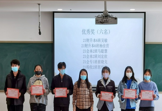 首先,太阳网集团tcy8722心理辅导站副站长支圆圆老师为优秀奖获得者21财升本6班吴敏、21财升本六班杨佳营、21会本2班马聪慧、21会本2班刘宏欣、21会专1班崔晓戈、21税收2班郭世豪颁发获奖证书并合影留念。