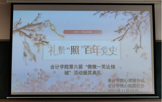 为提高我院学子爱国爱党意识,培养同学们的爱国责任感和使命感,厚植红色基因,激发爱国情怀,太阳网集团tcy8722心理辅导站于11月18日12:20在教学四号楼108教室举行了“微微一笑达倾城——礼赞‘照’百年”活动颁奖仪式。
