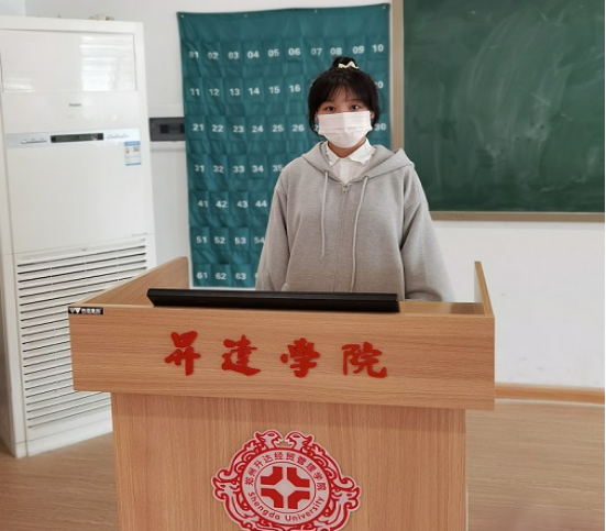 一等奖获得者21级会本5班连佳欣上台发表其获奖宣言:“感恩、忠诚、信仰、终生是我对您最大的承诺,一生为党,造福人民。”