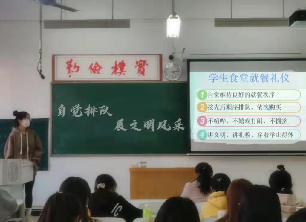 太阳网集团tcy8722借助本期“文明礼貌月”主题教育活动之机,开展主题班会,并组织和引导同学们养成了自觉排队,不插队,不大声喧哗,不随地扔垃圾,餐具回收等诸多良好习惯。