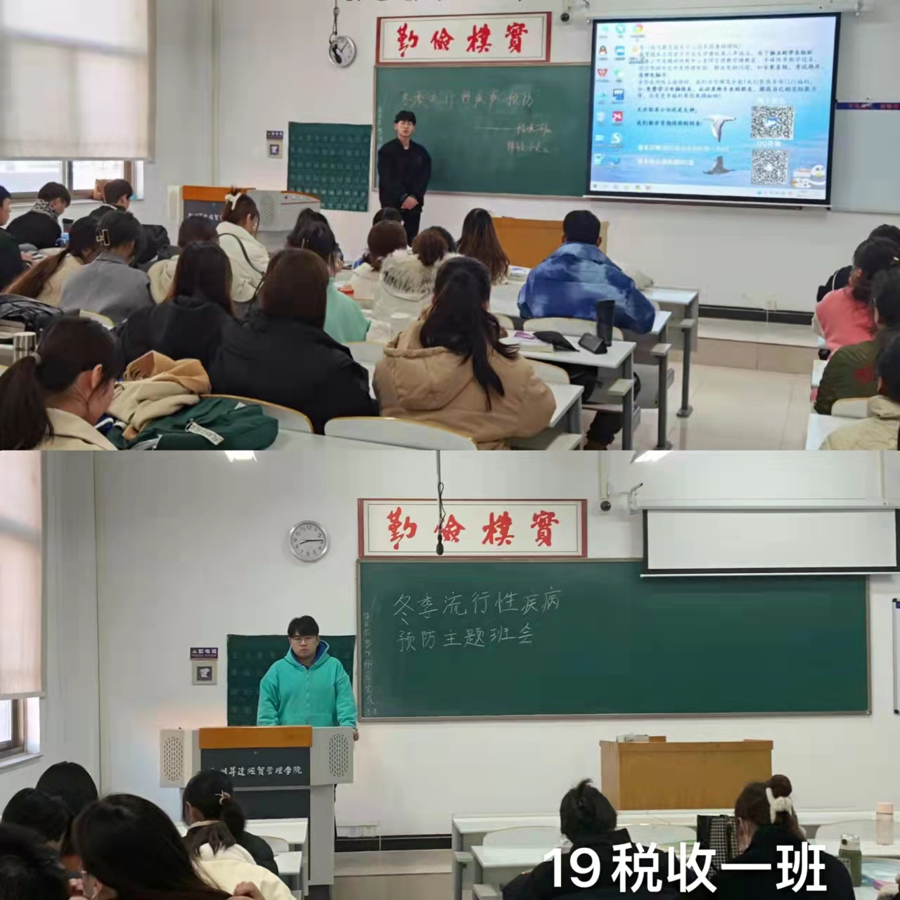 各年级辅导员老师带领同学们详细学习了各类流行性疾病的预防知识,了解呼吸道传染病的传播途径和预防方法,增强和提高自我防病意识。要求同学们认真学习相关知识,在疫情期间发现可疑呼吸道传染病症状者应及时向老师报告,保持教室、宿舍内外环境卫生和空气流通,课间应到室外活动。呼吁同学们保持健康生活习惯,要做到:勤洗手、勤换牙刷、脚部保暖、冷水洗脸、饮食清淡、精神愉快、合理睡眠。