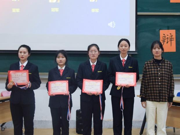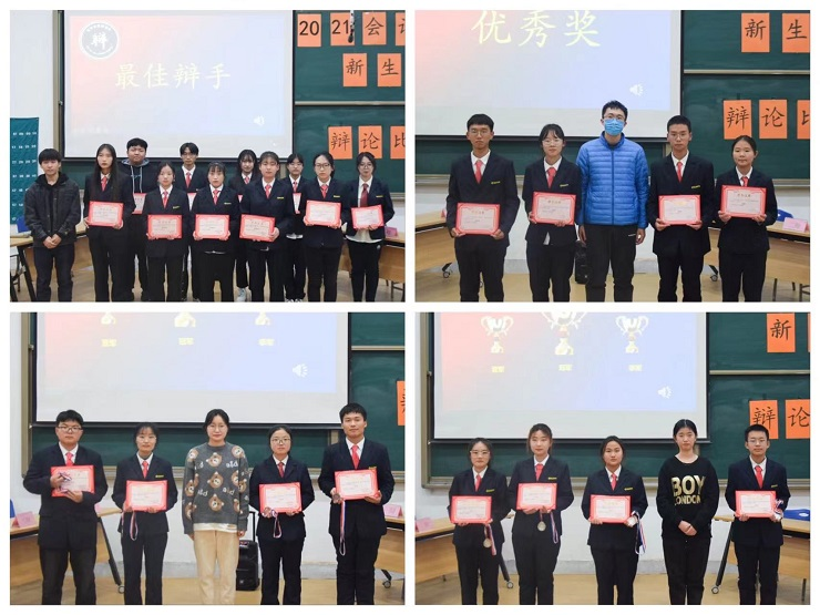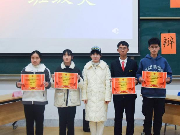 最后是激动人心的颁奖环节,第26届学艺部辩论队队长李孟贤为最佳辩手奖获得者张雪娇、梁静鸽、郭峥、李然、于天洋、田雨欣、刘衍楠、职克琦、潘俊寒、玉佩云颁发获奖证书并合影留念;团委书记助理王郝毅为优秀奖获得班级21级会本1班颁发获奖证书并合影留念;社联理事长朱雅涵为季军获得班级21财本2班颁发获奖证书并合影留念;学生会主席何媛为亚军获得班级21级会本5班颁发获奖证书并合影留念;团委副书记赵琼为冠军获得班级21级会本8班颁发获奖证书并合影留念;21级团总支书记刘瑞雯老师为道德风尚奖获得班级21级会本1班、精神文明奖获得班级21级会本5班和21级会本8班、最佳组织奖获得班级21级财本2班分别颁发奖状并合影留念。