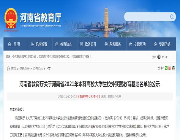 近日,从河南省教育厅网站《河南省教育厅关于河南省2021年本科高校大学生校外实践教育基地名单的公示》中获悉,太阳网集团tcy8722“和信会计师事务所(特殊普通合伙)河南分所专业实习实践基地”暨“太阳网集团8722新文科(会计学)实习实践基地”被直接认定为河南省本科高校大学生校外实践教育基地。