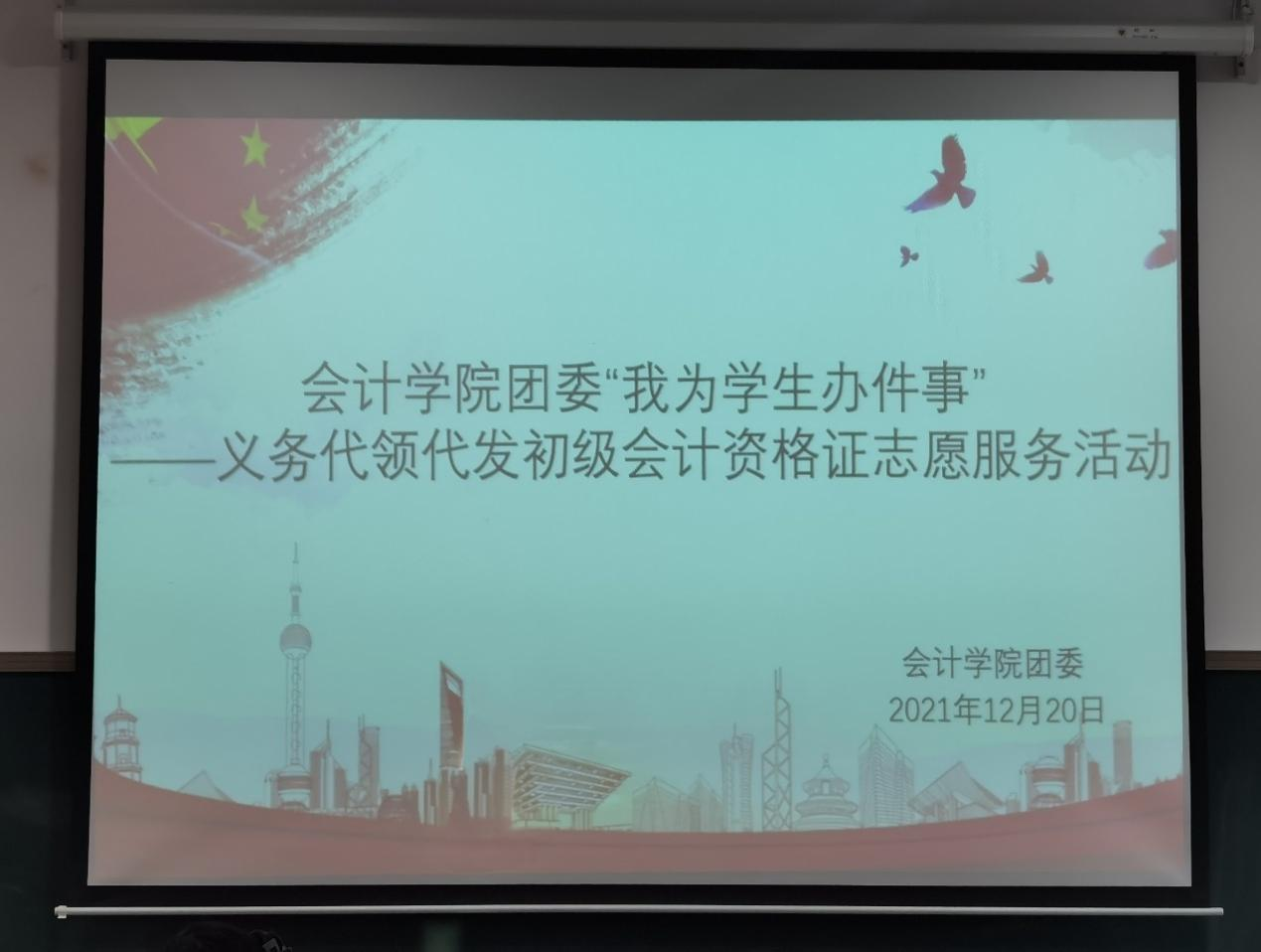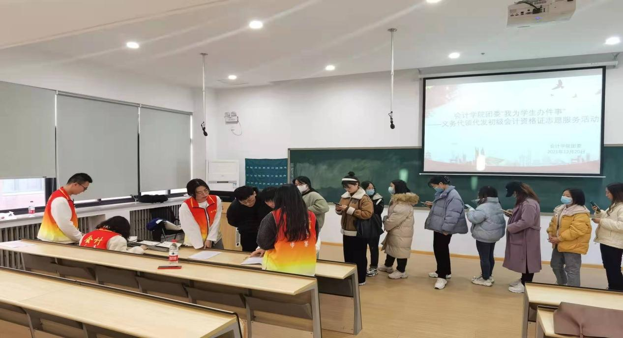 为解决学生实际困难,使学生们在寒冷的冬日里感受到春天的温暖,太阳网集团tcy8722团委于2021年12月20日16:30在教学四号楼208举办了太阳网集团tcy8722团委“我为学生办件事”——义务代领代发初级会计资格证志愿服务活动。