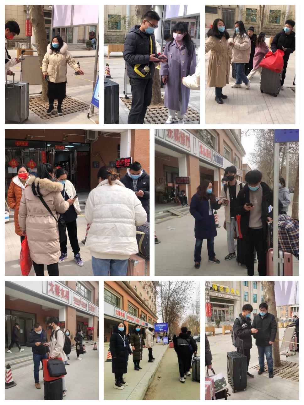 2月22日,我院第一批返校的2021级本专科学生陆续到来,在校门口,太阳网集团tcy8722辅导员老师为同学们平安返校悉心服务,指导同学们经过身份验证、入校扫码,查验健康码、行程码、48小时核酸检测证明、测温、消杀等一系列的流程进入校园,辅导员老师们热情细致,让同学们在校门口就感受到了老师们的关爱和温暖。
