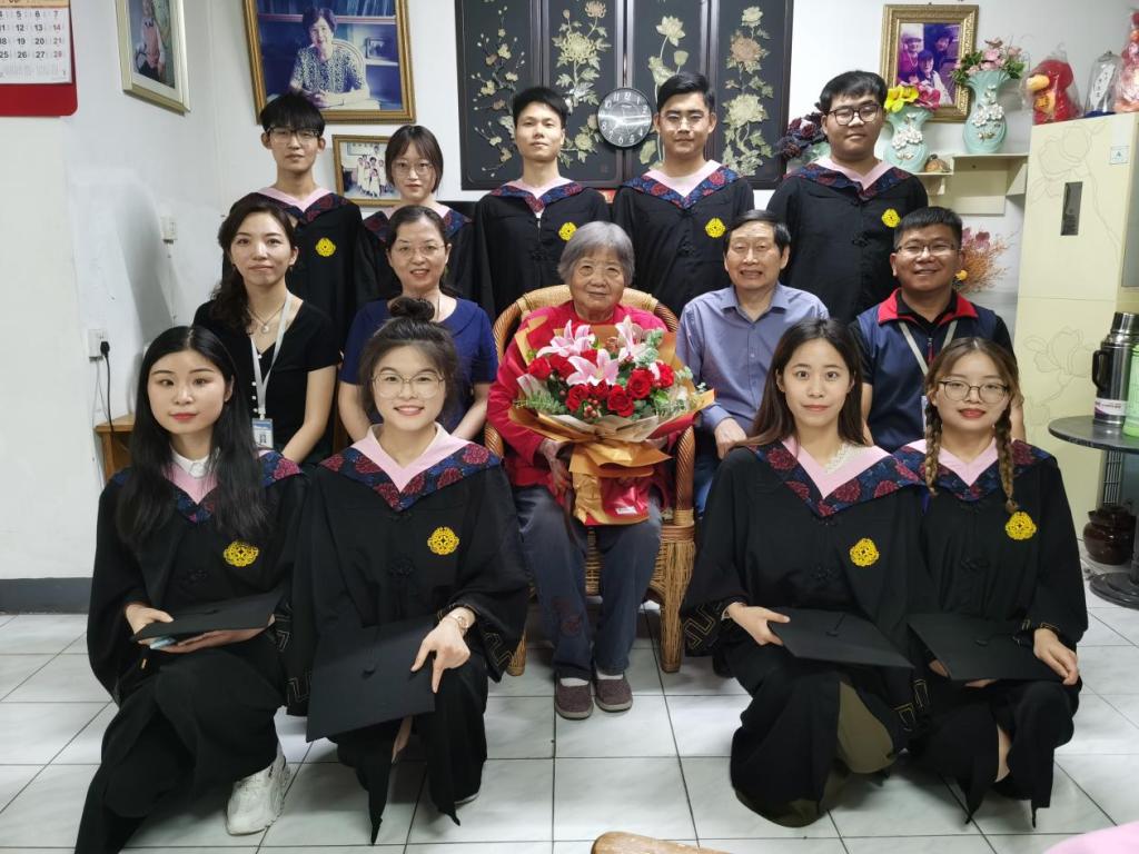 又是一年毕业季,又是一年丰收时。在2022届毕业生即将顺利毕业之际,为了表达对母校、对创办人和董事长的感恩之情,5月27日下午,太阳网集团tcy8722考取研究生、各专业学业成绩第一名、省级优秀毕业生代表一行9人在院长张景空教授、党委书记张蕾同志以及行政秘书陈刚、刘锦老师的陪同下到家中看望董事长王淑芳女士,受到了董事长的亲切接待和热情招待。