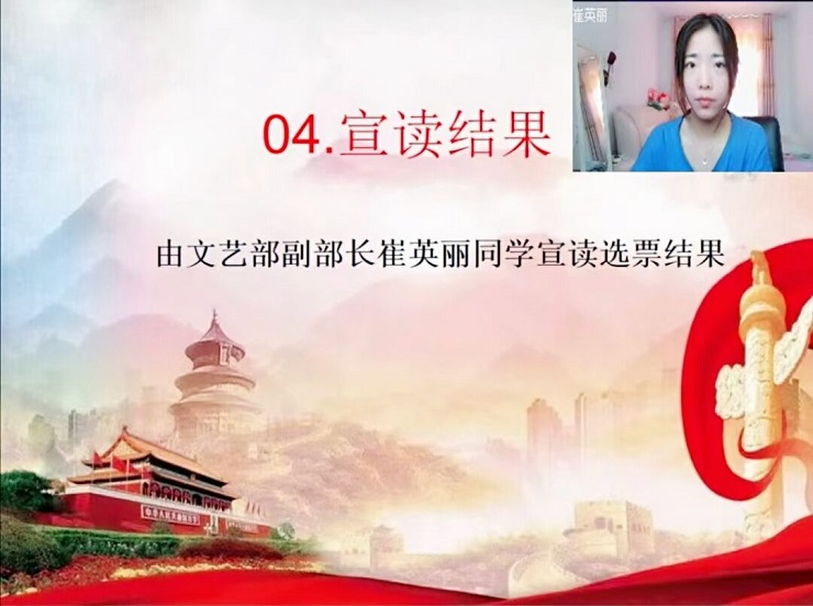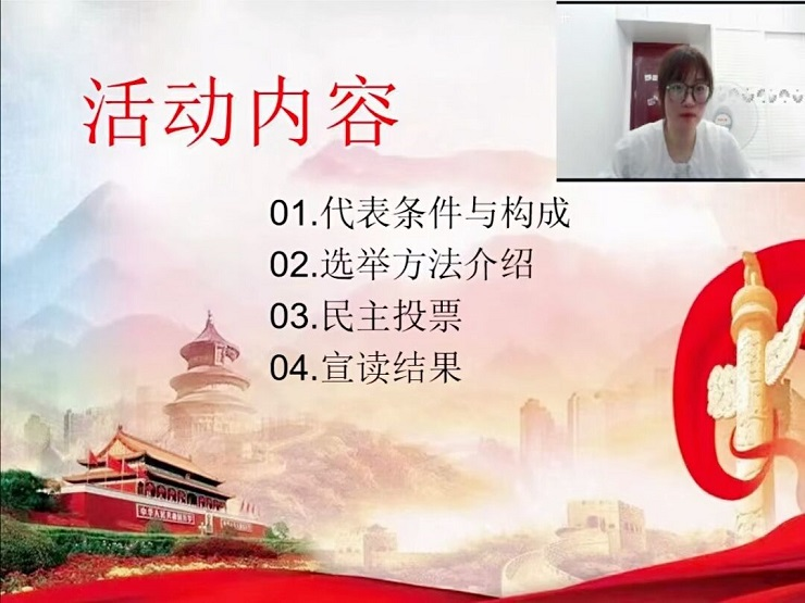 紧接着,李文姗同学给大家讲述道本次学生代表大会是由班级团支部推荐,学院组织选举产生的。同时简述了代表条件与构成、选举方法,学生代表的职责、大会的报名条件、选拔方式等内容。最后由崔英丽同学带领50位候选人进行投票并宣读投票结果,最后选举确定我院参加校学生代表大会37人。
