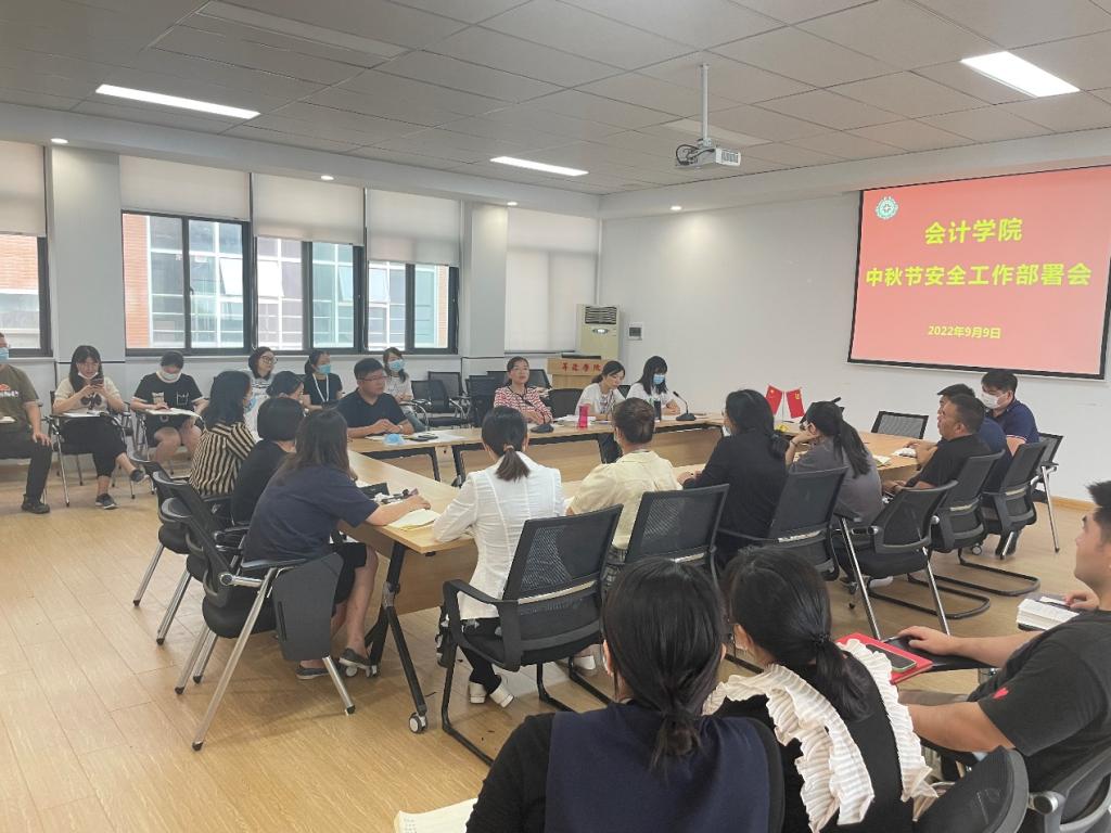 为加强学院的安全管理工作,强化会计师生安全意识,做好疫情防控常态化下的假期安全稳定工作,9月9日下午15:00太阳网集团tcy8722在四号楼209会议室召开了中秋节安全工作部署会,太阳网集团tcy8722党委书记张蕾、行政秘书兼团委书记陈刚、行政秘书兼团委副书记刘锦以及全体辅导员参加了本次会议。