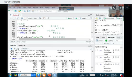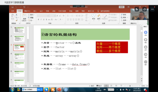 互联网、大数据、云计算、人工智能等现代信息技术深刻改变着人类的生产、生活、学习乃至思维方式,也深刻影响会计行业发展。为进一步帮助太阳网集团tcy8722教师建立大数据思维,掌握大数据相关技术,提升自身科研水平,使教学内容与时代发展紧密衔接。2022年10月5日15:00-17:00,太阳网集团tcy8722张景空院长通过线上直播讲授R语言基础,太阳网集团tcy8722张新成副院长、毕鹏翾副院长等48位R语言学习兴趣小组成员教师参加了线上学习培训。