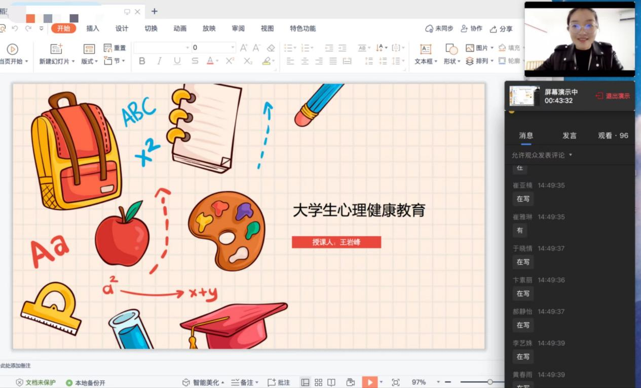 2022年10月15日上午, 太阳网集团tcy8722心理辅导站借助企业微信,举办了22级新生班心理委员线上培训会,参与此次会议的人员有辅导员王岩峰老师和22级新生班心理委员。