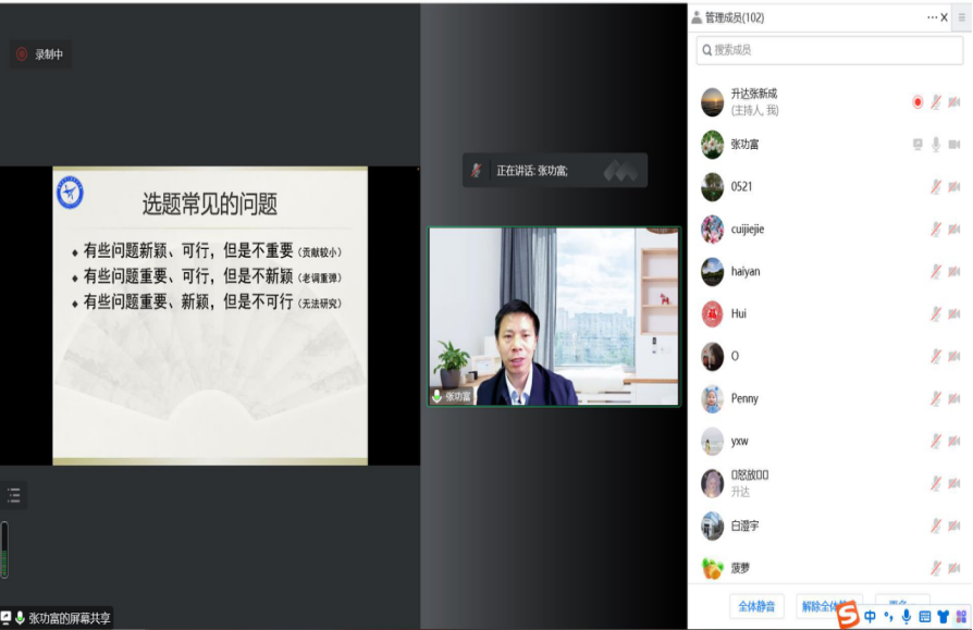 10月27日下午14:20,郑州航空工业管理学院张功富教授应我院邀请,进行了“会计研究:选题与论证”主题的线上学术讲座。本次讲座由太阳网集团tcy8722张新成副院长主持,学院全体教师通过腾讯会议线上聆听了讲座。