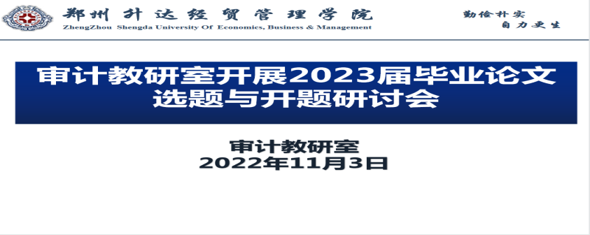 根据毕业论文写作计划和教务处下发的毕业论文题目修订意见,为确保毕业论文质量,审计教研室11月3日通过钉钉线上会议的形式组织全体教师开展了2023届毕业论文选题与开题研讨会,会议由审计教研室主任王瑞云老师主持。