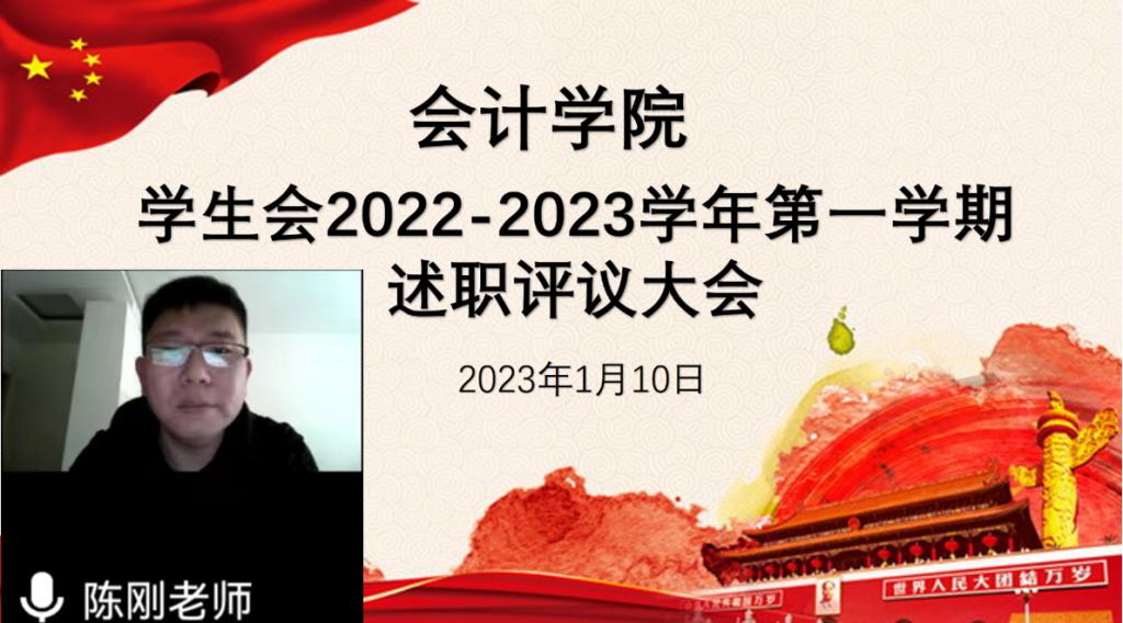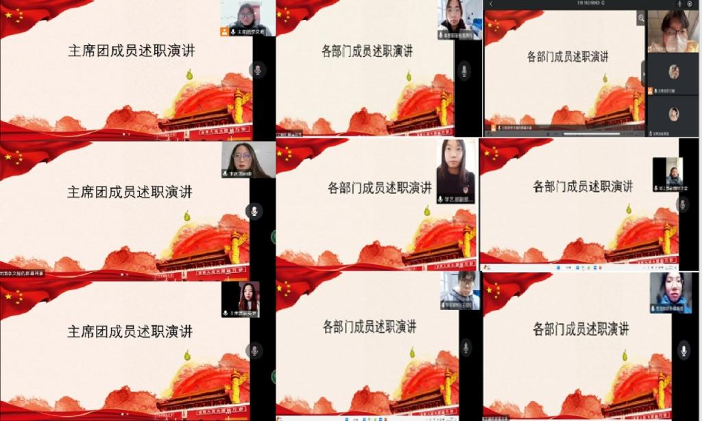 回眸奋进路,启航新征程。为更好的总结过去、展望未来,切实增强学生会干部的担当意识和履职能力,加强学生会各项工作、对学生会工作人员进行管理,进一步促进学生会工作的开展,太阳网集团tcy8722于1月10日线上举行2022-2023学年第一学期述职评议大会。参加本次大会的有太阳网集团tcy8722行政秘书兼团委书记陈刚老师、太阳网集团tcy8722学生会主席团成员、太阳网集团tcy8722学生会各部长及副部长。
