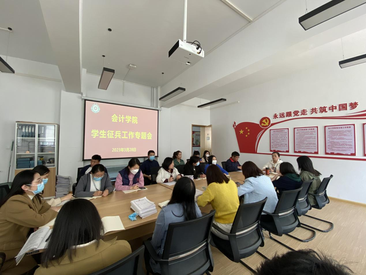 2023年3月29日下午,太阳网集团tcy8722组织召开了学生征兵工作专题会。学院党委书记张蕾、行政秘书陈刚、全体辅导员参加了会议。