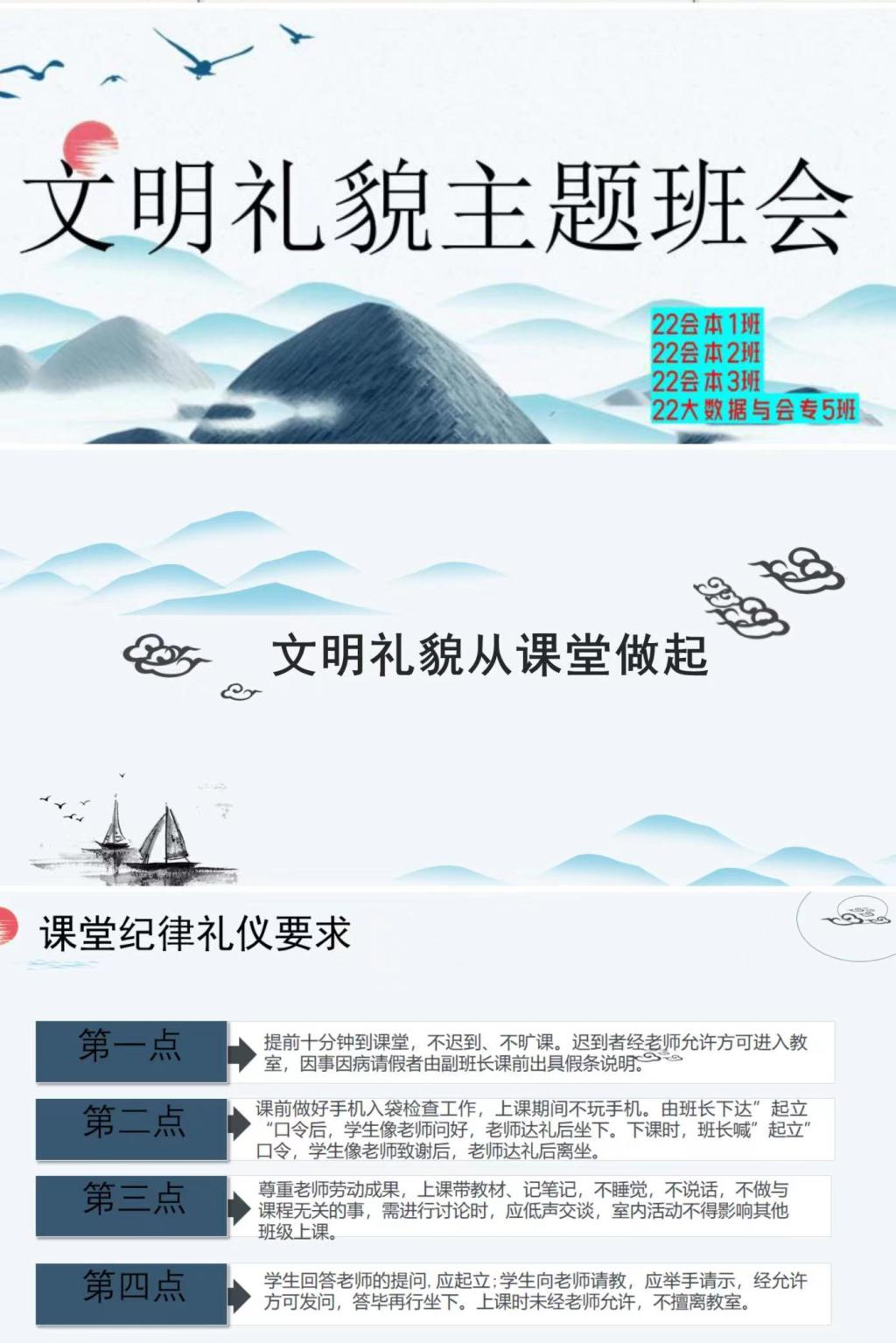 会后,辅导员老师们通过召开主题班会、开展演讲比赛的形式,宣讲课堂礼仪要求,教育学生尊师重教,将课堂礼仪做实做细。