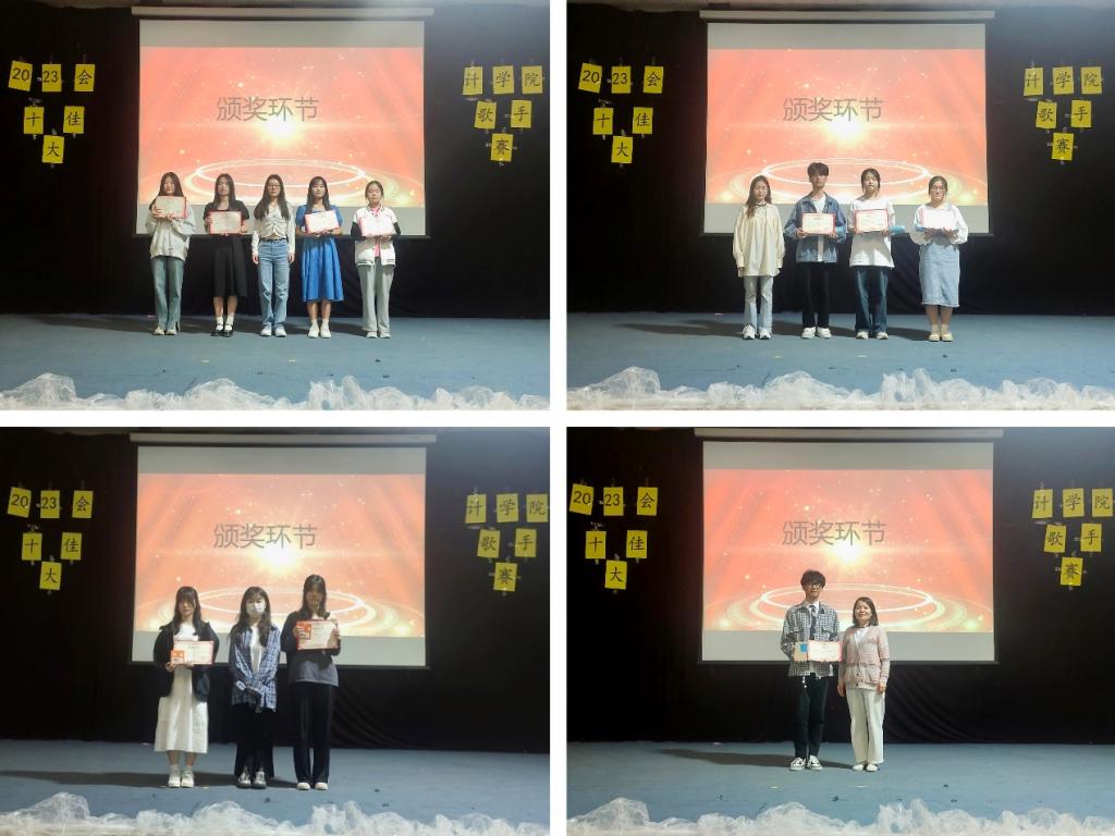 最后到了激动人心的颁奖环节。由27届文艺部部长刘美琪为优秀奖获得者张欣欣、潘馨雨、李颖慧、林玉茹同学颁发获奖证书并合影留念;由社联理事长王怡凡为三等奖获得者郝美越、于锦朵、刘炎同学颁发获奖证书并合影留念;由团委副书记霍梦颖为二等奖获得者张星雨、孙佳音同学颁发获奖证书并合影留念;由团委副书记支园园老师为一等奖获得者陈雷同学颁发获奖证书并合影留念。