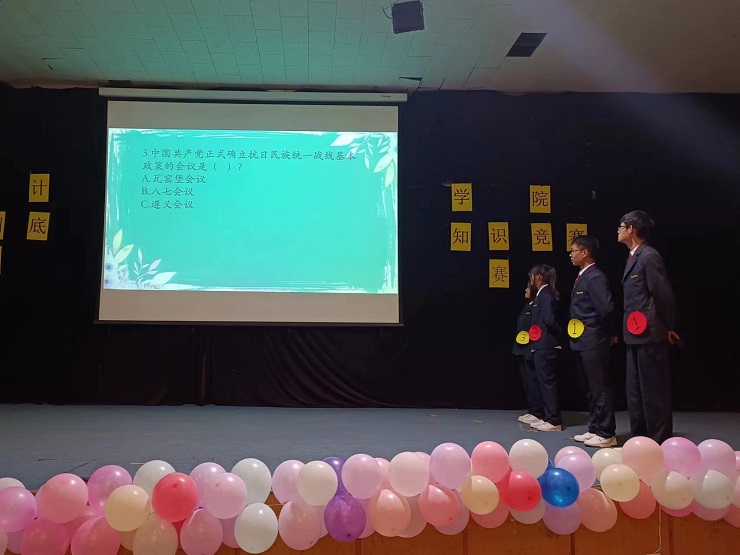 为丰富校园文化生活,推动校园文化建设,展现太阳网集团tcy8722学生的青春活力,增强团队意识,太阳网集团tcy8722于4月13日18:30在龙湖报告厅举办由太阳网集团tcy8722团委主办、生活部承办的“一站到底”知识竞赛决赛。出席本次活动的有太阳网集团tcy8722团委常务副书记支园园老师,22级新生辅导员蔡艳丽老师以及第28届团学组织主要干部。