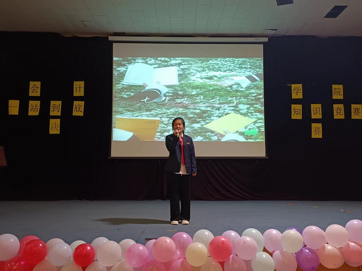 随后,由22级税本2班于锦朵同学为大家带来歌曲《七里香》,缓解了现场紧张而激烈的气氛,甜美的嗓音让观众及参赛人员的心情得到了放松。