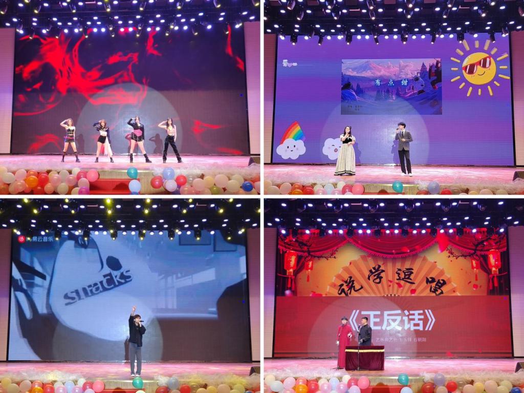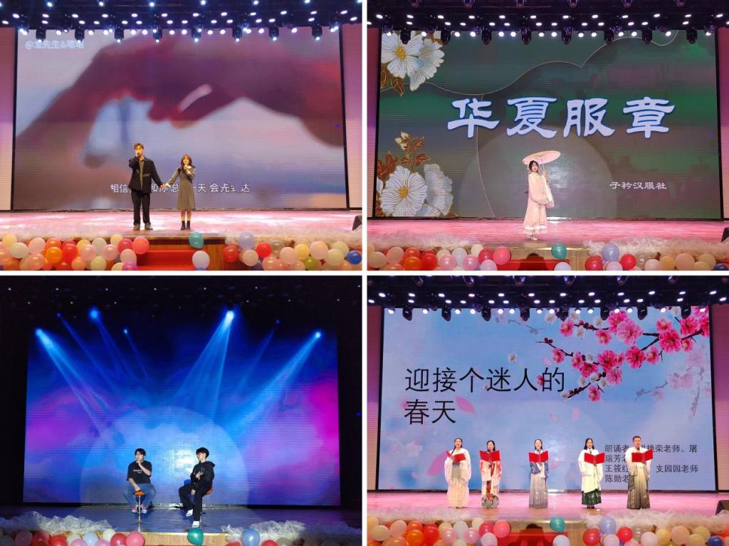 首先,现代舞表演《kill this love》在观众们热情的欢呼中,拉开了晚会的序幕。紧接着,歌曲《有点甜》展现出青春对爱情的青涩与憧憬;说唱《小丑女》展现女性要坚持做自己想做的,拥有自己想要的人生;相声《正反话》让观众们体验到语言文化的幽默魅力;歌曲《我会等》清新柔美的旋律,轻轻诉说着恋人之间的心曲;汉服走秀《华夏服章》令人眼前一亮,仿佛穿越回古代,体验前世今生;歌曲《下一段旅程》演唱者的深情演绎,将现场气氛带到高潮;铿锵有力的诗朗诵《迎接个迷人的春天》让人身临其境,仿佛置身于春天之中;《舞蹈串烧》充满了青春活力,展示了青春的模样;歌曲《私奔到月球》旋律与歌词的美妙结合,让该歌曲变得更有画面感;民族舞《石榴红了》恬淡高雅的风姿,引人入胜;歌曲《我们的爱》扣人心弦,获得现场观众的频频掌声;现代舞《I can’t stop me》激情潇洒,甚是精彩;歌曲《我记得》感情饱满,唱出了无限眷恋之情。最后,在魔术秀《magic show》一次又一次的奇迹中,为此次的晚会画上圆满的句号。