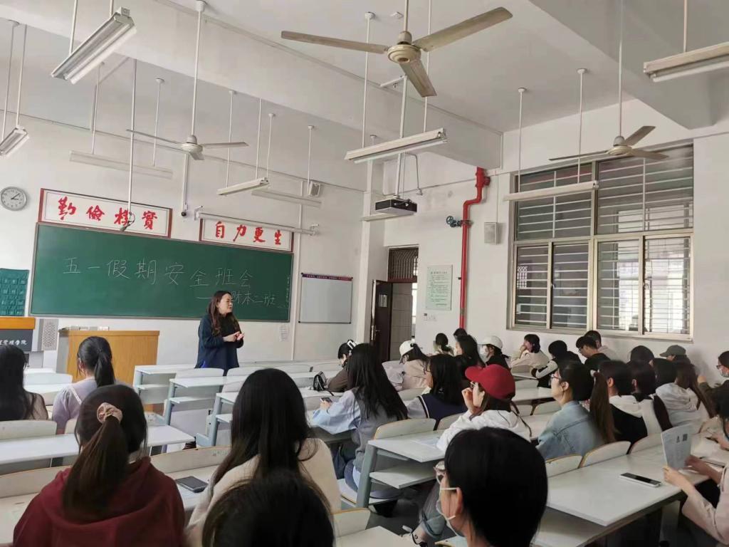 为做好“五一”假期期间的安全稳定工作,强化校园安全管理,增强学生安全意识,确保学生平安健康过节,根据学院部署,各年级各班积极召开“五一”假期安全教育主题班会。