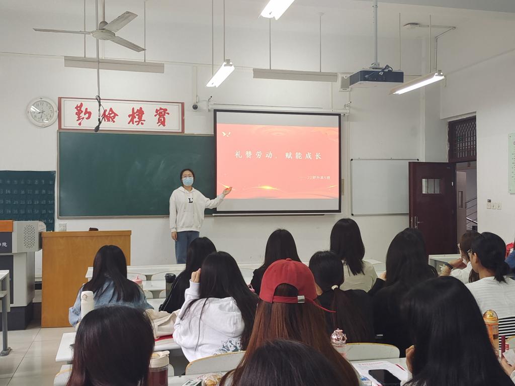班会上,辅导员首先向同学们介绍本次“劳动教育月”的指导思想,即大力弘扬勤俭、奋斗、创新、奉献的劳动精神,积极探索劳动教育新模式,把劳动教育纳入人才培养全过程,教育引导同学们崇尚劳动、尊重劳动,懂得劳动最光荣、劳动最崇高、劳动最伟大、劳动最美丽的道理,以后能够辛勤劳动、诚实劳动、创造性劳动。接着,让同学们积极展开讨论,分享自身在日常生活中是如何贯彻落实劳动教育以及从劳动中获得了何种益处。最后,辅导员强调通过此次劳动教育,培养同学们热爱劳动、辛勤劳动的意识,养成良好的劳动习惯,并树立尊重劳动人民、珍惜劳动成果的意识。
