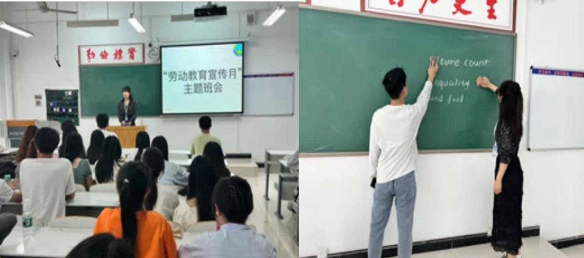 在“劳动教育月”主题班会中,辅导员刘瑞雯将劳动教育和思想政治教育进行有机融合,积极弘扬劳动精神、劳模精神和工匠精神,引导同学们树立正确的劳动价值观,要求全体同学积极维护校园建设,共同创造良好的学习环境。