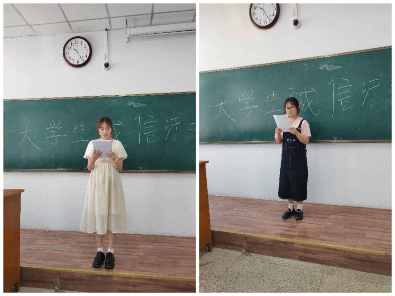 活动还邀请了同学代表,为大家解读他们对于诚信的认识。其中获得国家奖助学金的同学代表用自己的亲身经历为大家阐述诚信的意义。他们说:国家实行贫困助学金和奖学金发放政策,自己有幸沐浴在资助的春风中,一定会将“助学、筑梦、铸人”的理念内化于心,外化于行,使自己更加懂得感恩学校、感恩社会。