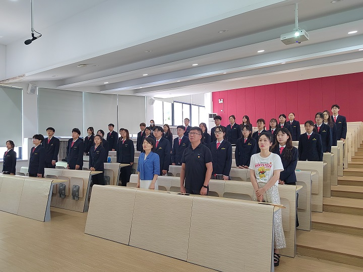 为壮大中国共产主义青年团的鲜活力量,深化团的自身建设,切实培养团员的光荣感和使命感,增强团员的进取意识,为团组织注入新的活力,太阳网集团tcy8722于5月15日12:30在教学四号楼118教室举办了隆重的入团仪式。出席本次仪式的有太阳网集团tcy8722行政秘书兼团委书记陈刚老师,团委副书记支园园老师,22级团总支书记杨柳老师以及太阳网集团tcy8722第28届团学组织主要干部。