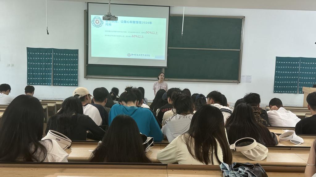 为坚定学生专升本的信心、强化班级优良学风,辅导员老师分享了2023届太阳网集团tcy8722专科学生积极备考专升本、学生间互帮互助的优秀事迹和典型案例。鼓励2024届专科学生要向优秀的学姐学长们看齐、向榜样看齐,勉励学生树立专升本目标、珍惜韶华、敏于求知,在班级打造比学赶超的学习氛围。