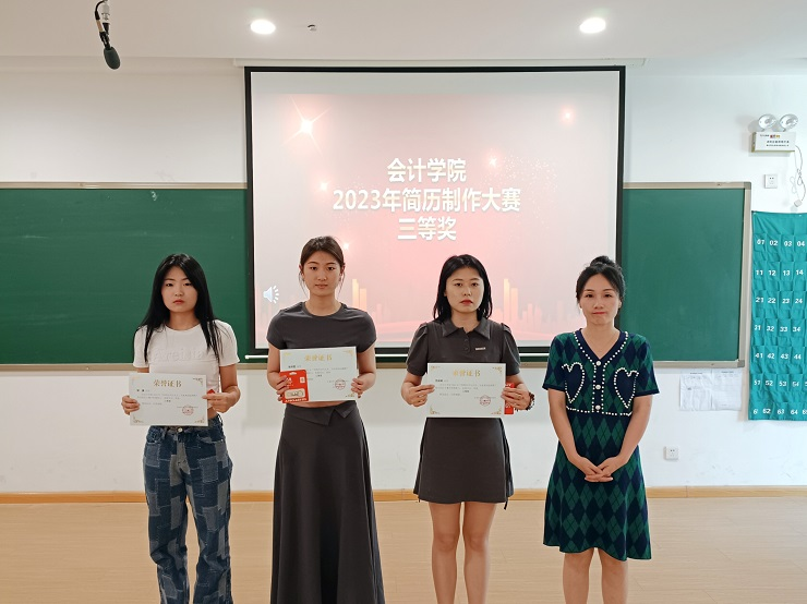 通过参赛的简历作品可以看出,同学们根据专业和自己的优势特点来设计制作简历,每一份都构思新颖、简洁实用、富有热情和艺术性,充分运用了自己所学的知识,回顾了自己大学期间接受的专业教育、获奖情况、社会实践等经历,明确了自身的求职意向,不仅展示了扎实的文字和语言表达功底,而且表现出过硬的专业知识、丰富的社会实践和端正的就业态度。最终,评委老师们以基础信息、个人经历、附加信息、艺术设计四项为评判标准,本着公平、公正的原则,仔细认真评阅,评选出了一、二、三等奖和优秀奖。并于6月9日中午在教学四号楼108由太阳网集团tcy8722团委副书记支园园老师、年级团总支书记杨柳老师、刘海杰老师、双创工作专员胡淑娟老师分别对获奖人员进行了颁奖和表彰。