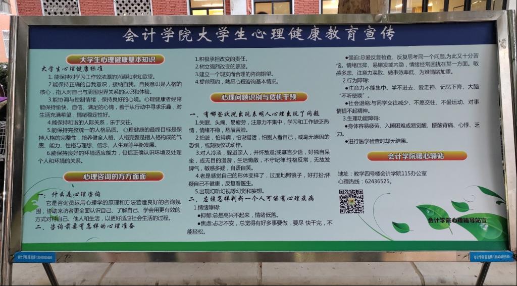 此次宣传活动吸引了大量学生,通过展板,微信群等形式进行心理健康知识的宣传,从而使同学们进一步了解什么是心理健康、什么是心理咨询,帮助同学们如何识别心理问题、如何进行自我调解与疏导,需要帮助的时候到哪里去咨询,帮助同学们塑造积极健康的心态。