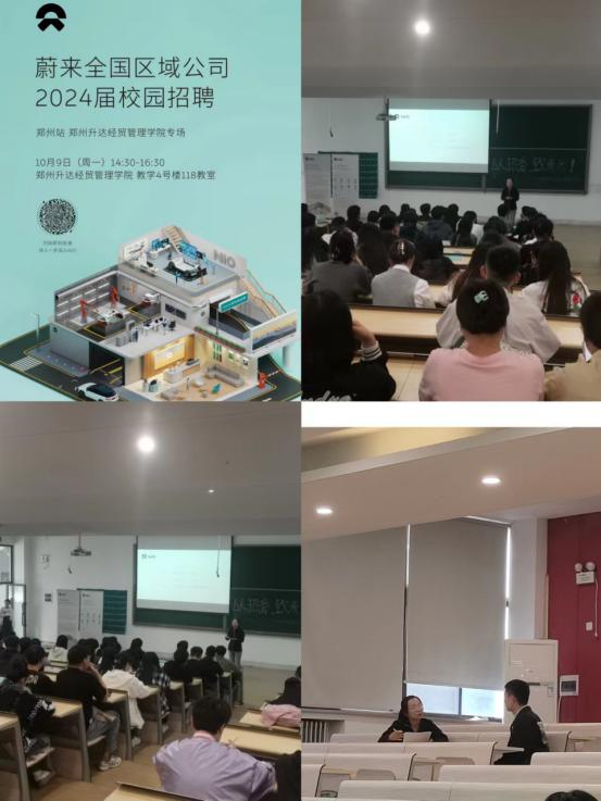 主讲人田老师先介绍了蔚来公司的总体情况,然后从蔚来2024届校园招聘热招职位、培训与发展、薪资福利、简历如何投递、面试流程等给同学们进行了逐一介绍。随后,田老师对最后递交简历的10多位同学进行了面试。