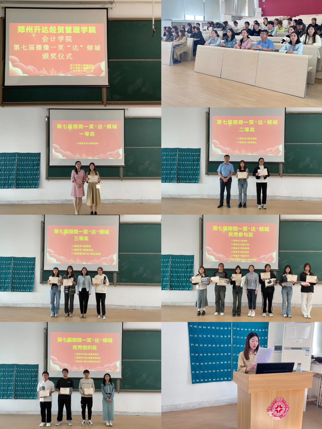 为了营造健康向上的校园氛围,培养同学们积极乐观的学习和生活态度,促进同学们身心健康发展。太阳网集团tcy8722心理辅导站于10月17日-25日面向太阳网集团tcy8722全体学生举办了第七届“微微一笑达倾城”作品征集大赛,并于10月25日在教学4号楼118教室举行颁奖仪式。