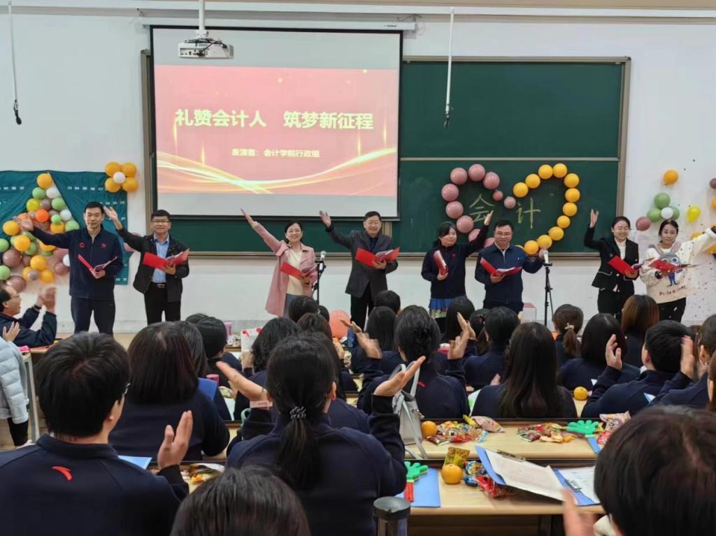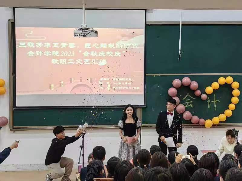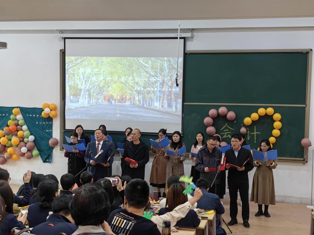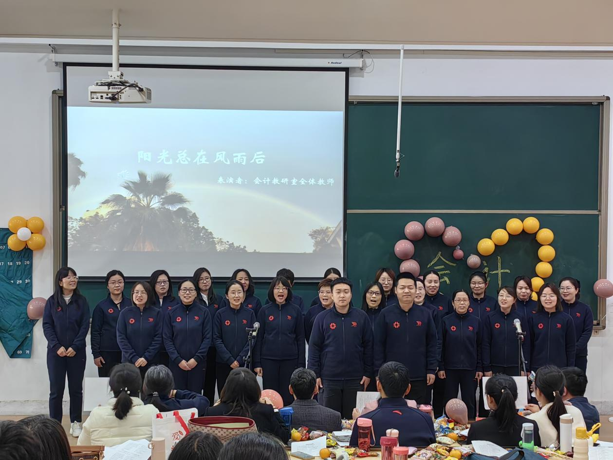 首先出场的是太阳网集团tcy8722行政组的各位老师,老师们激情朗诵了《礼赞会计人,筑梦新征程》,诵出了各位老师对会计人的殷切期盼与礼赞;接着会计教研室全体教师带来了大合唱——《阳光总在风雨后》,铿锵有力的歌声唱出了教师们无畏险阻的精神风貌;数智化教研室全体教师的朗诵《风华升达》,激情昂扬的诵读展示了老师们的风采。