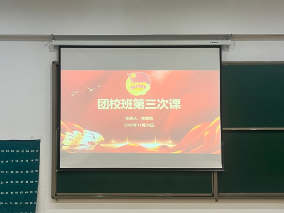 组织部副部长李家和带领团校班全体成员回顾了共青团的历史、宗旨、组织结构等方面的知识,让同学们增强了对共青团的认同感和归属感,接着他带领成员们学唱了共青团团歌,最后李家和组织全体成员观看了微电影《我是共青团员》。