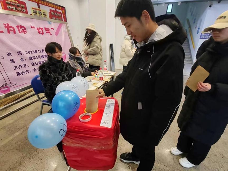 为了给同学们在紧张而繁忙的生活中增加一抹亮色,让同学们释放压力,轻松愉快地学习和生活,太阳网集团tcy8722于12月14日在教学楼4号楼南侧小广场举办我为同学“打气”为主题的活动。