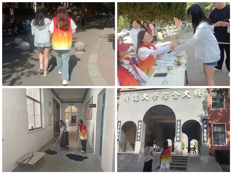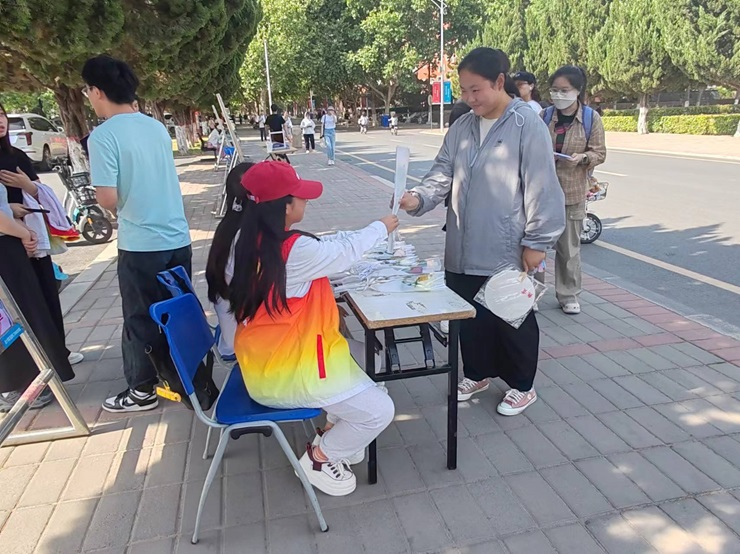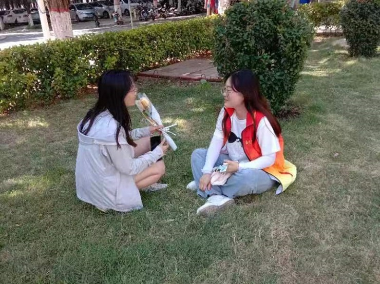 志愿者们通过在明德广场放置活动展板和向同学讲解等方式进行宣传,使大家充分了解本次活动举办的目的。志愿者们化身热情的向导,与同学们一同漫步在校园的林荫道上,参观校园的标志性建筑,讲述校园的历史故事。通过与同学深入聊天的方式,为他们的生活增添一抹亮色。最后志愿者们向参与活动的同学们介绍鲜花的种类,互赠鲜花并表达祝福。