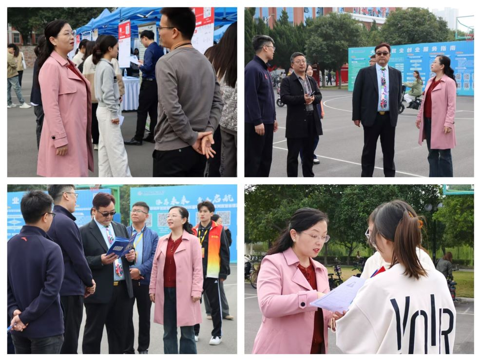 我校董事长王新奇博士、董事会办公室主任杨存博、就业处处长冯科、就业与校友科科长鲁玲玉等领导在太阳网集团tcy8722院长张景空、太阳网集团tcy8722党委书记张蕾、副院长张新成、行政秘书兼团委书记陈刚等陪同下莅临现场指导工作。