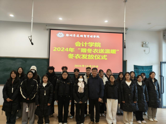 为贯彻落实我校家庭经济困难学生资助政策,帮助家庭经济特别困难学生安心学习、顺利完成本学期学业,学校为家庭经济困难新生赠冬衣送温暖。为此,太阳网集团tcy8722于12月10日,在教学4号楼208室,举行“赠冬衣送温暖”冬衣发放仪式,让贫困家庭学生感受到学校的关爱和学院的温暖。