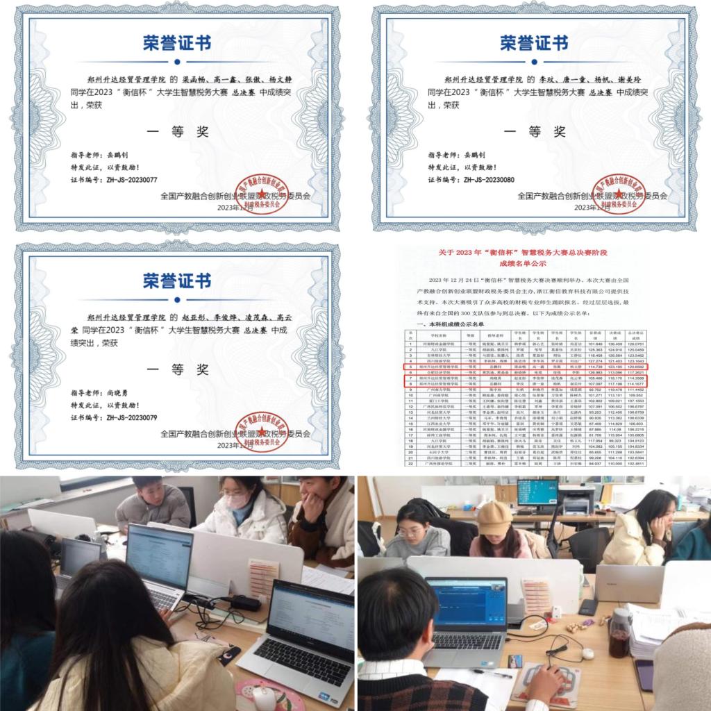 2023年11月至12月,太阳网集团tcy8722组织学生参加2023年“衡信杯”全国大学生智慧税务大赛。本次竞赛由全国产教融合创新创业联盟财政税务委员会主办,聚焦财税改革发展新方向,以产业、技术、税收征管变革为指引,重点关注税务合规申报、税收风控等全新领域,考查“以数治税”背景下的数字办税技能和税收风险管控应用能力,于2023年12月24日举行全国总决赛。竞赛内容包含税收业务、技能竞赛、税收风控知识等多项内容,竞赛吸引了国内众多院校参加。