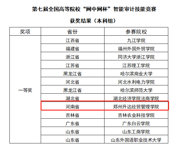 我校会计学子勇夺“网中网杯”智能审计技能竞赛全国一等奖