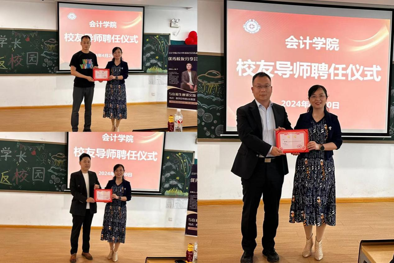 在优秀校友分享会上,张蕾书记为优秀校友颁发“校友导师证书”,09级会计电算化专业校友李鹏、13级会计学专业校友张千分别向学弟学妹们分享自己学业、就业、创业等方面的成功经验。在交流互动环节,李鹏就学生提出的有关考研考公和如何高质量就业的问题展开详细解答,张千结合个人求学和工作经历对学弟学妹们慷慨解囊。大家沉浸在两位学长的分享中,并从中汲取知识为自己的未来保驾护航。