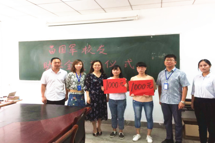 苗国军先生在自我发展的同时不忘母校,特设专项资金做为会计系贫困助学金,表达了对升达会计系学弟学妹们的关爱与激励,鼓励在校学子努力学习、自强不息,为以后的发展做充分的准备。张欣主任在转达了苗国军校友对学弟学妹的关爱后,同时提出希望他们好好学习,练就本领,毕业后能够自立自强,回馈家庭,报答社会。